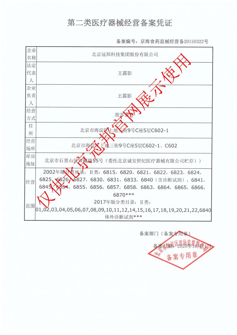 北京冠邦科技集團股份有限公司是集研發、生產、銷售為一體的醫療器械企業。2004年入駐北京市中關村上地信息產業基地,榮獲“高新技術企業”認證、中國醫療器械CMD質量體系認證和CE認證。